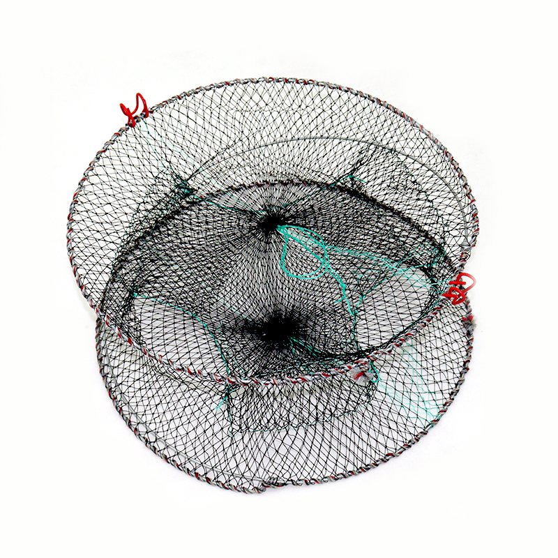 Product Name: Galvanized Spring Crab Cage Mesh: PE Material Available 9/12/15/18Ply Size: 40*25cm 45*25cm 50*25cm 60*30cm Galvanized Steel Wire Frame